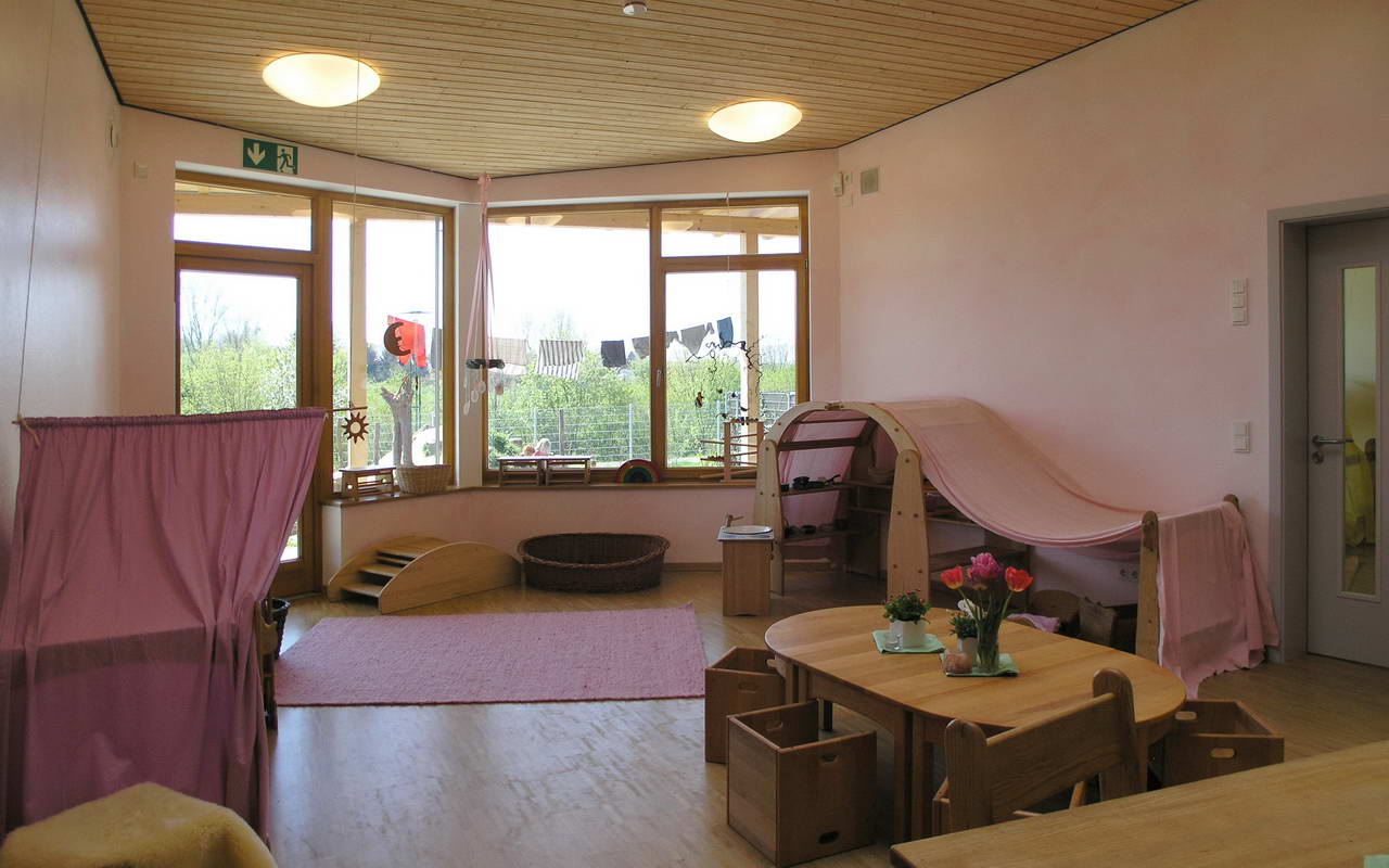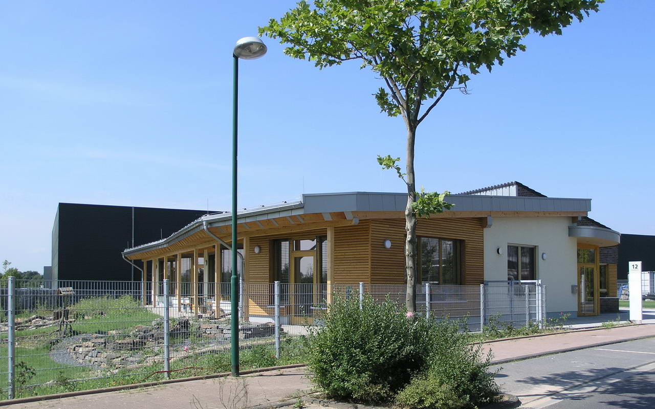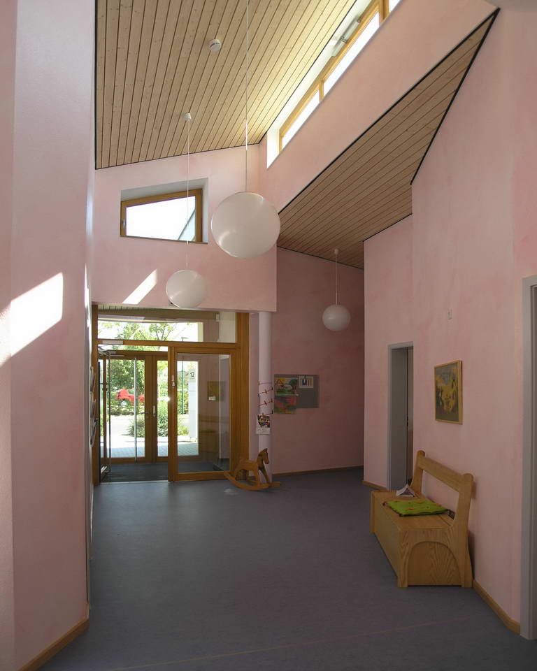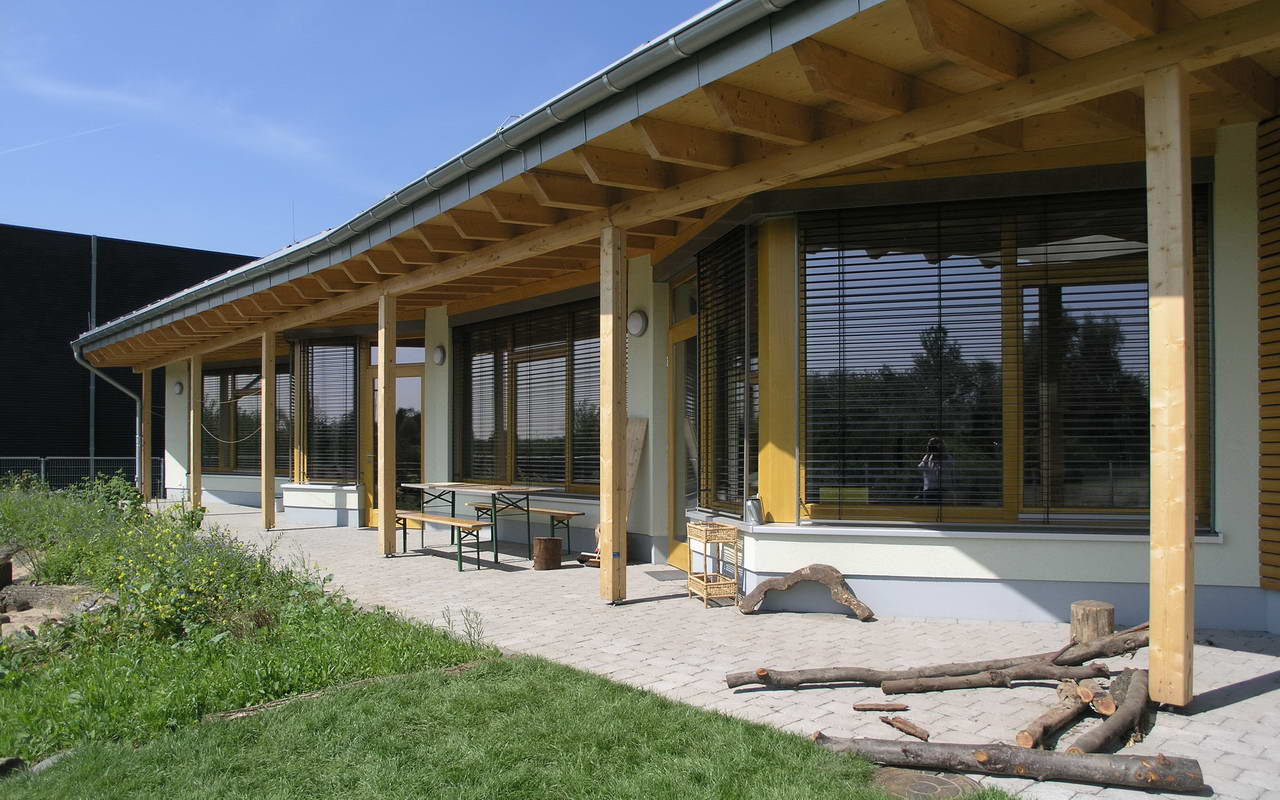 Teilnehmer am „Tag der Architektur 2015“ – Der 2-gruppige Waldorf Kindergarten wurde im Sommer 2014 eröffnet. Die Entwurfsideen bilden zum Einen die konsequente Umsetzung einer moderneren pädagogischen Konzeption mit der Betreuung von Kindern unter 3 Jahren und zum anderen die Verwendung von vielen natürlichen Materialien und das spannende Spiel mit direkter und indirekter Belichtung. Der naturnah gestaltete Außenbereich lädt zum Spielen ein. Die Technik des Gebäudes ist energetisch optimiert durch den Einbau eines Micro-BHKWs, welches neben der Wärmeversorgung für die Fußbodenheizung und Warmwasser gleichzeitig Strom für die Eigenversorgung erzeugt.